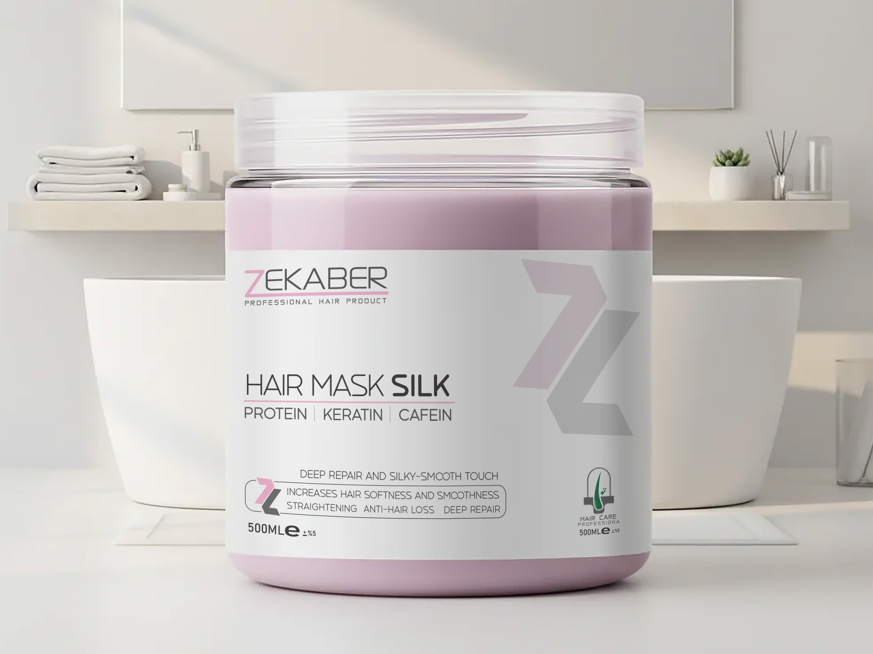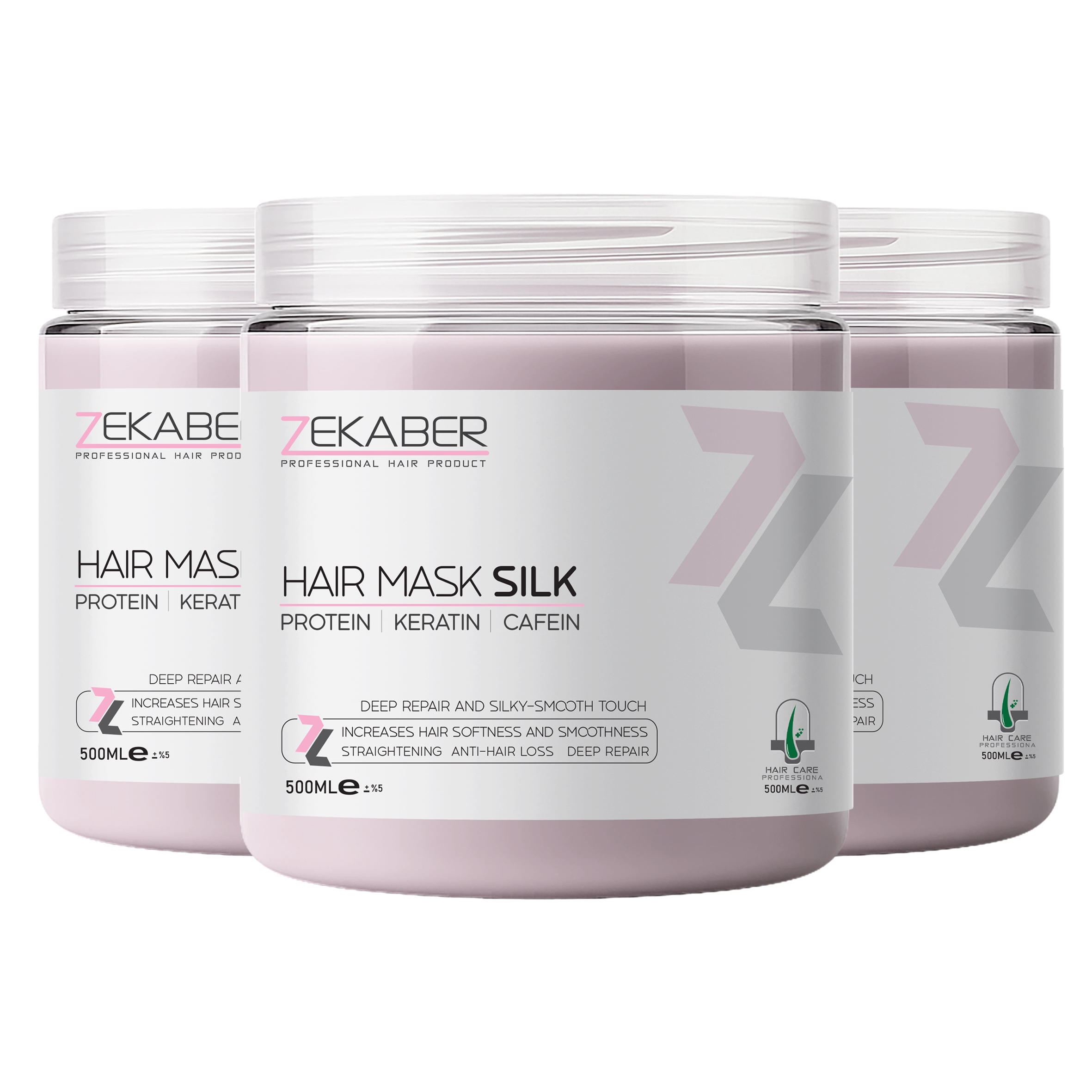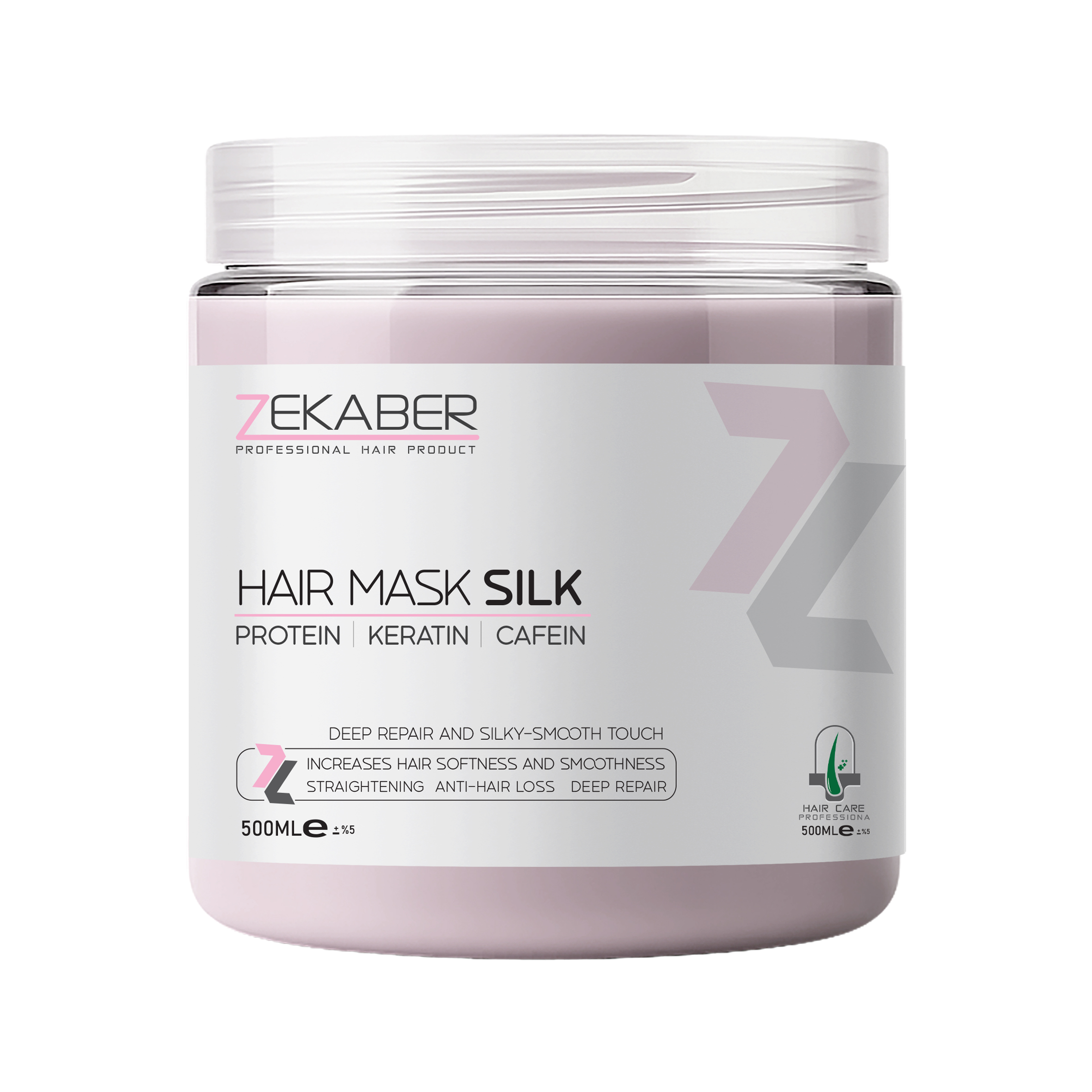 ماسک مو سیلک پروتئین( مناسب موهای چرب )زکابر حاوی کراتین کافئین حجم 500 میلی لیتر